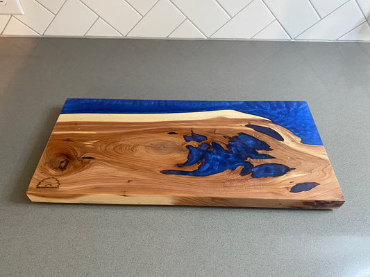 Custom Cedar and Blue Epoxy Charcuterie Board
